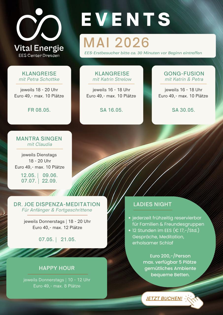 Sichere dir 120 Minuten tiefste Erholung im EES-Energiefeld für nur 49,- € (statt 96 €). Immer donnerstags von 10:00 bis 12:00 Uhr.