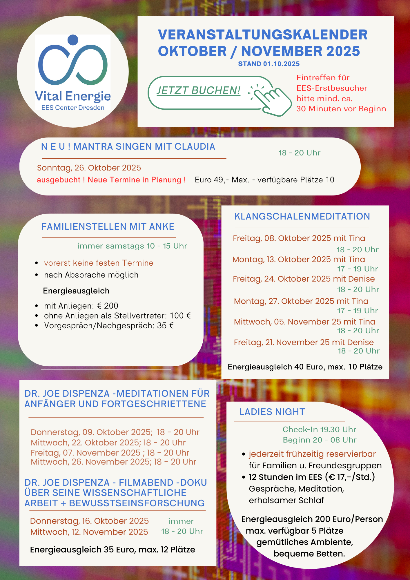 Erlebe tiefgreifende Heilimpulse, Inspiration und Begegnung in der einzigartigen Atmosphäre unseres EES-Centers Dresden.