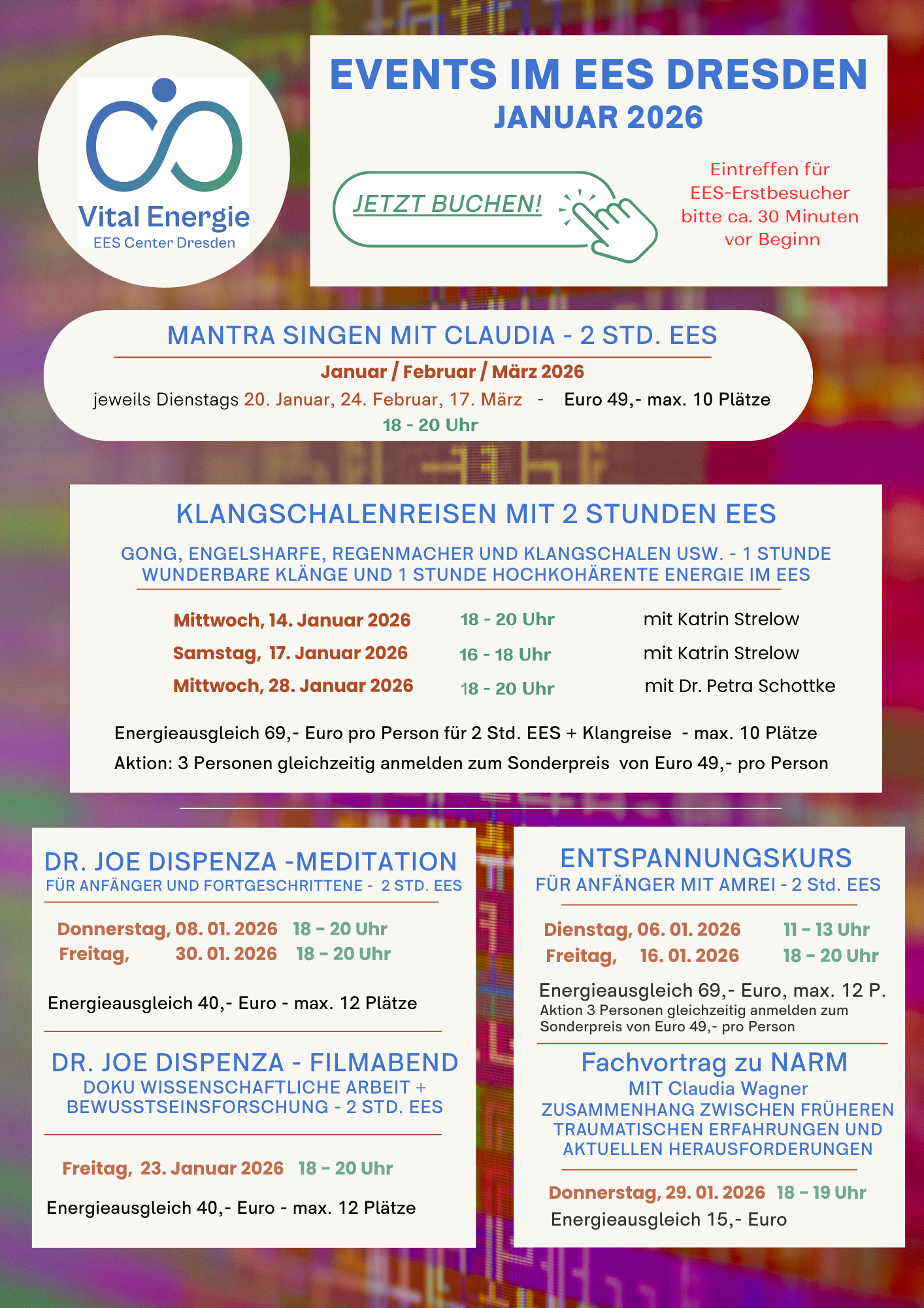 Erlebe tiefgreifende Heilimpulse, Inspiration und Begegnung in der einzigartigen Atmosphäre unseres EES-Raums in Dresden.