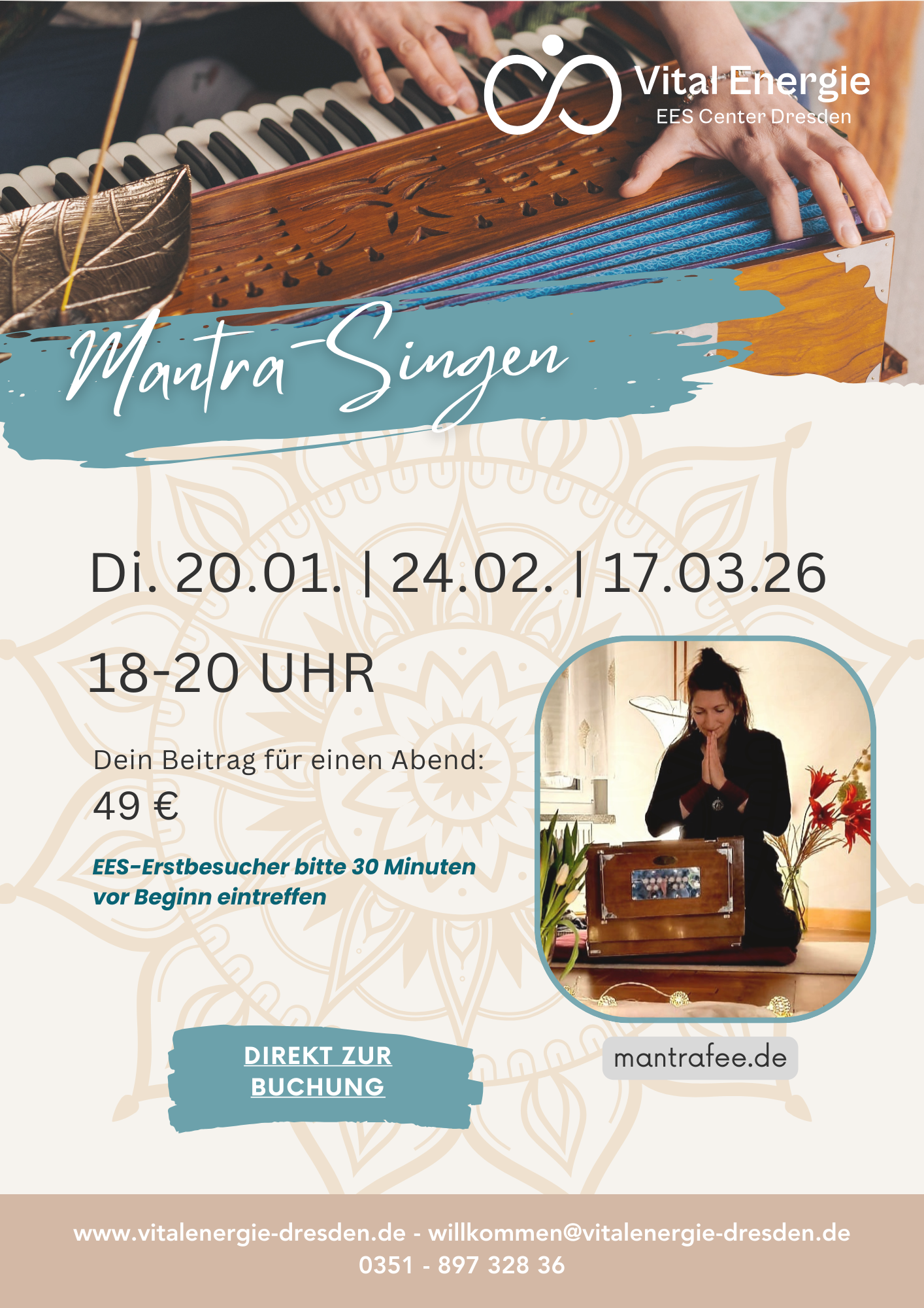 2 Stunden im EES-Raum, davon 1 Stunde Mantra-Singen und 1 Stunde Tiefenentspannung mit Energieaufnahme